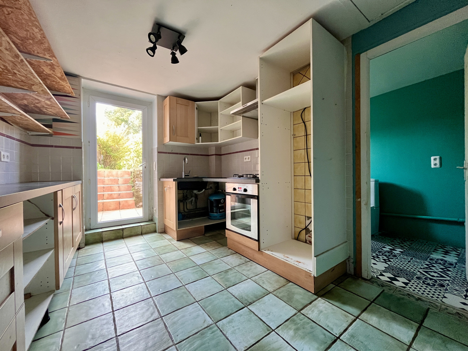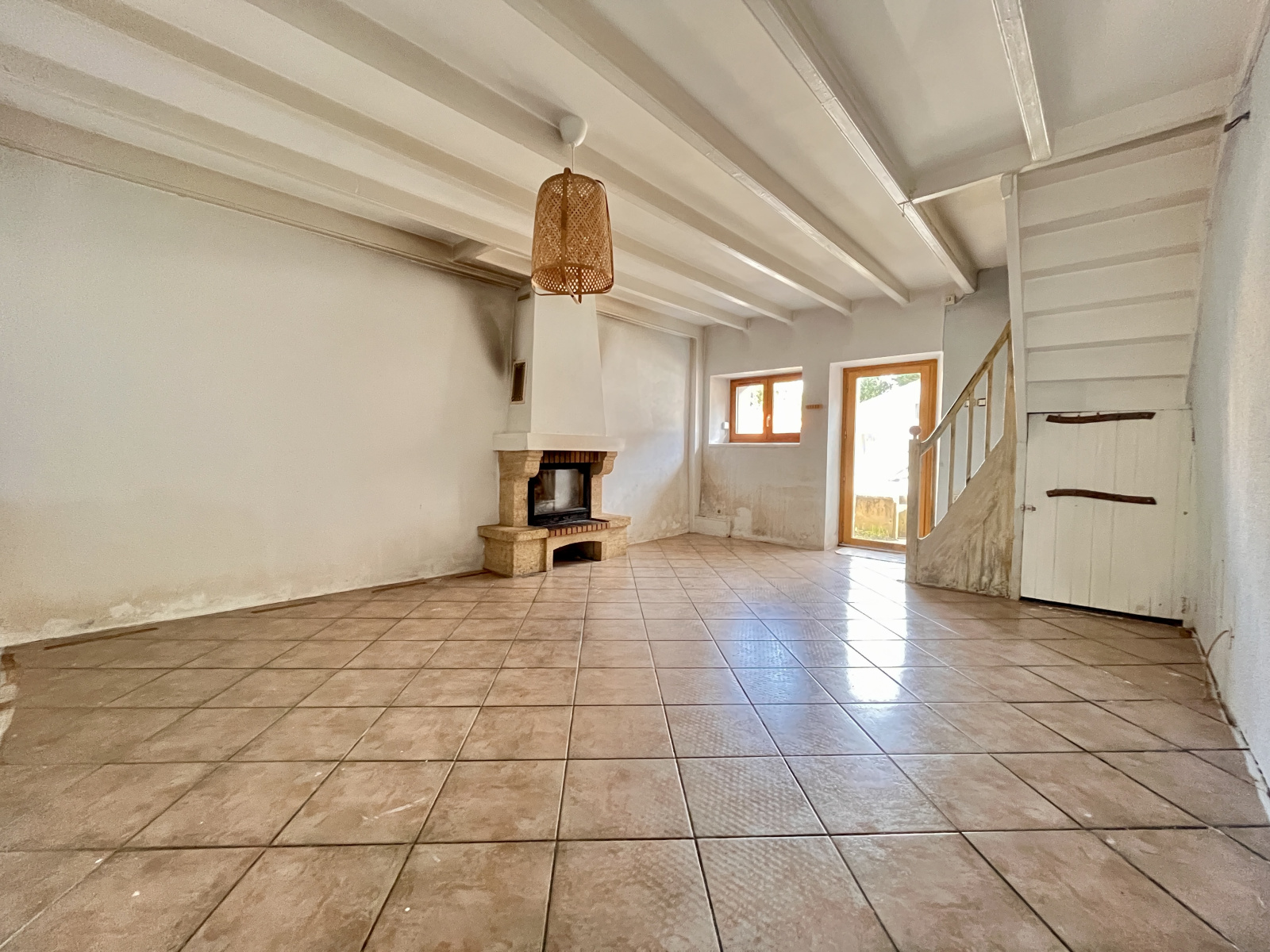 Cette maison mitoyenne en pierre se compose au rdc : d'une entrée donnant sur le salon-séjour de 23 m² équipée d'une cheminée insert - une cuisine indépendante donnant sur une terrasse - une salle de bain comprenant également les toilettes.