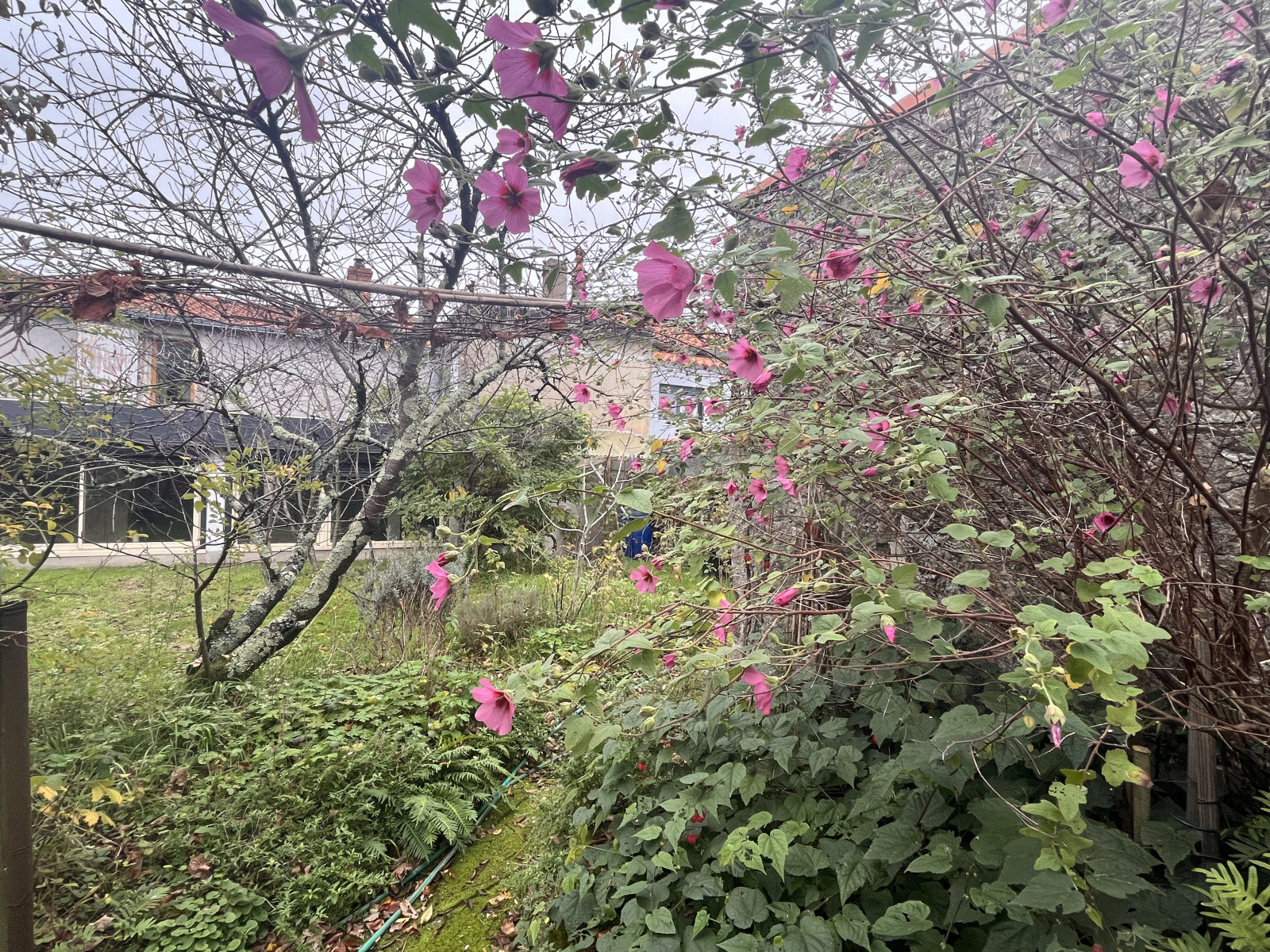 Un jardin intimiste entièrement clos avec arbres fruitiers et accès directement sur le bourg depuis un petit portillon.
