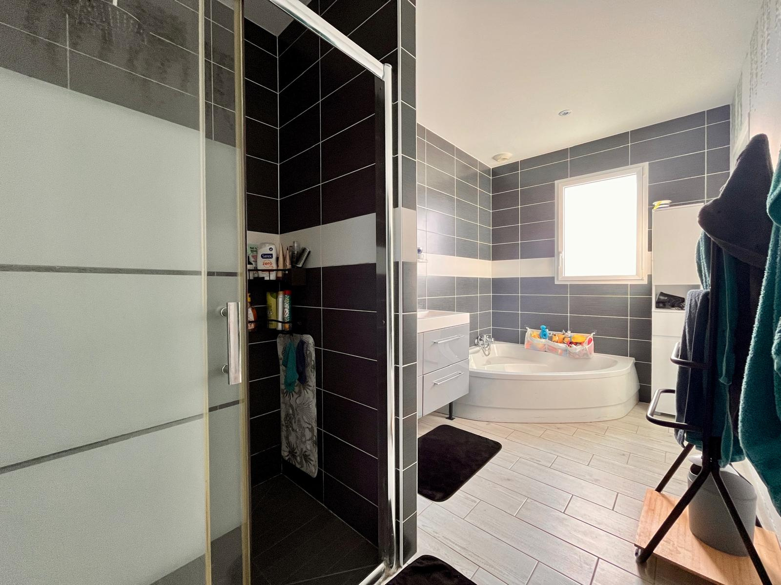 Côté nuit : Un dégagement desservant 4 belles chambres avec placards dont une suite parentale avec dressing et accès direct à la salle de bain équipée d'une baignoire d'angle, une douche et un double vasque, des toilettes séparées.