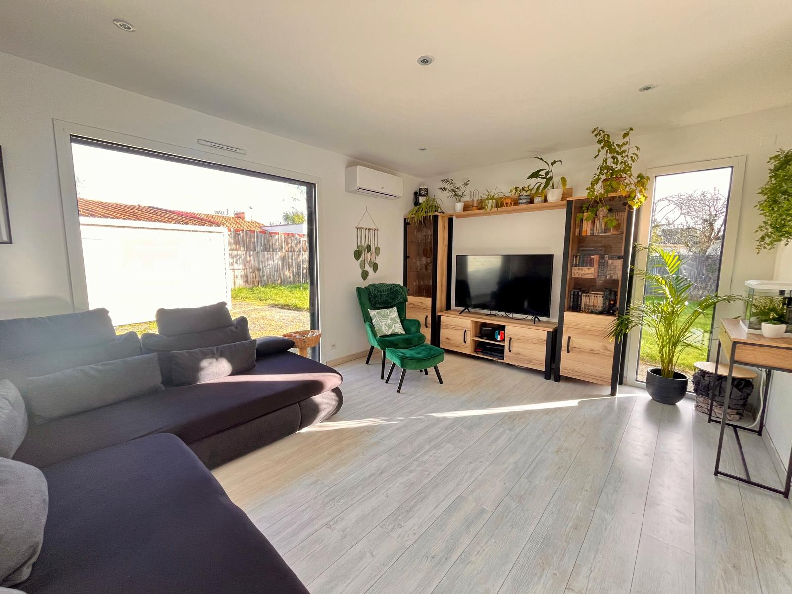 Cette lumineuse maison de 2014 se compose d'une entrée donnant sur une grande pièce de vie de 55 m² comprenant un salon-séjour exposé Sud et une cuisine aménagée et équipée avec ilot central, Un cellier - buanderie avec porte de service donnant sur le jardin et sur le garage, une salle d'eau avec toilettes.