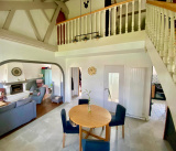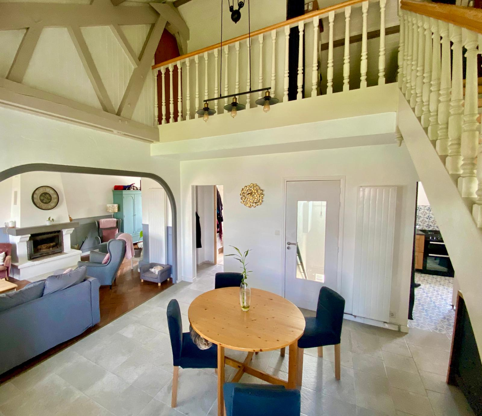 A l'étage : une mezzanine avec un espace bureau et deux grandes chambres mansardées.