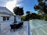 Jardin arboré et entièrement clos exposé Est-Ouest avec un puits et une piscine de 4x8 m couverte par un dome avec local technique.