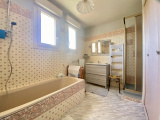 A l'étage : un espace mezzanine (12,50 m²) desservant 3 chambres avec placard, une salle de bain comprenant douche et baignoire, et des toilettes séparées.
