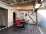 Une agréable véranda d'été sur une terrasse en composite, un atelier de 20 m² et un garage avec porte éléctrique et ouvert sur le jardin permettant le stationnement d'un véhicule et l'accès sur le jardin.