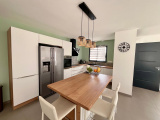 Cette maison se compose d'une belle pièce de vie lumineuse avec cuisine entièrement aménagée et équipée avec îlot central.